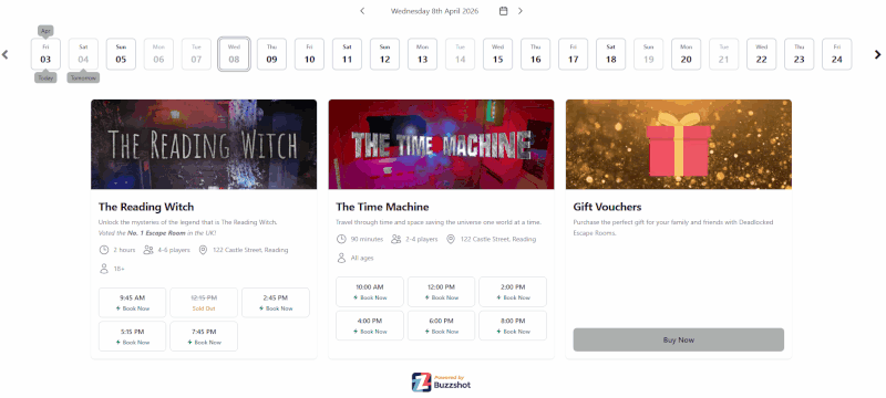 Overall, Deadlocked and Knockout Escape Rooms are a business that doesn’t change things without good reason to. This meant that anything new had to genuinely earn its place. Buzzshot Bookings did exactly that. From the seamless connection with their existing Buzzshot setup, to upsells that generate extra revenue in the background, to shared resources for their more complicated setups. It’s a system that’s been built to understand how escape rooms actually work.